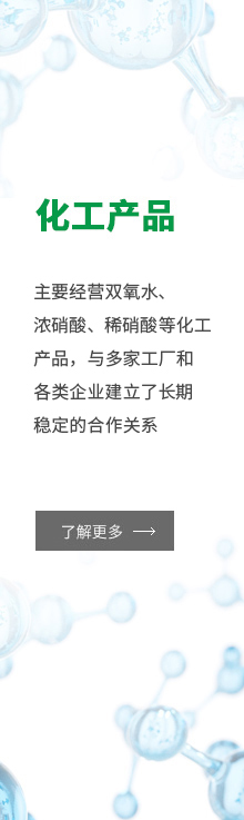 安徽安德諾化工產(chǎn)品銷售有限公司:位于合肥市蜀山區(qū),交通便利,主要經(jīng)營雙氧水(27.5%、35%、50%)、濃硝酸(98%)、稀硝酸(40%~68%)等化工產(chǎn)品,與多家工廠和各類企業(yè)建立了長期穩(wěn)定的合作關(guān)系。公司產(chǎn)品齊全,實(shí)力雄厚,重信用、守...